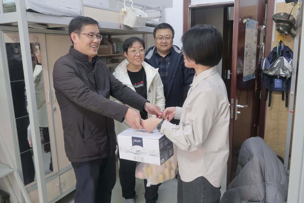 走访慰问过程中,老师们与同学们进行了亲切的交流,详细询问大家日常学习生活情况,并就如何合理安排学习与生活、调节身心状态等提出建议与指导。