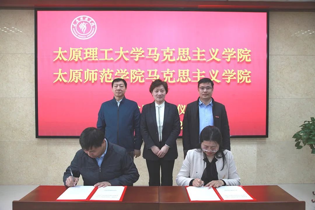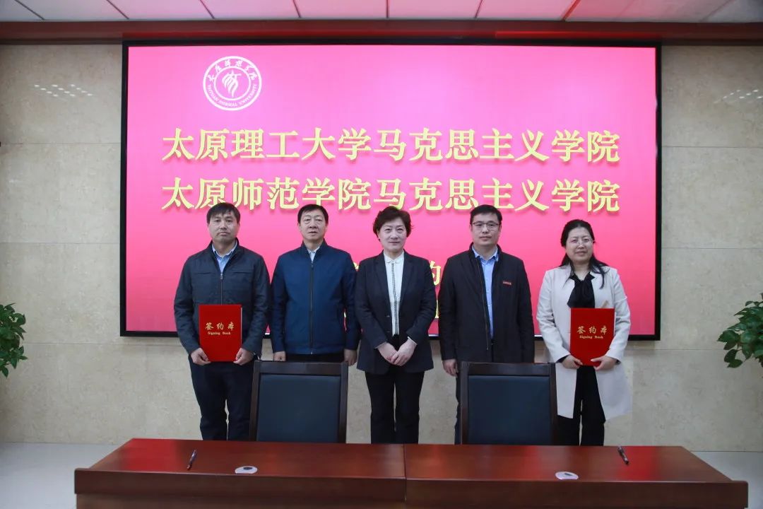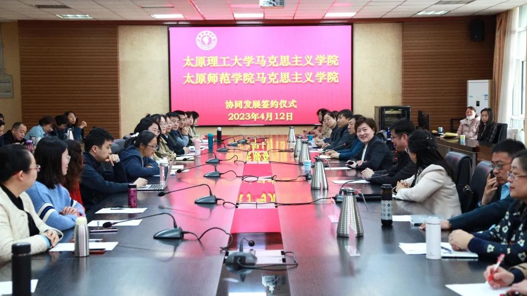 4月12日上午,太阳成集团tyc公司党委书记李济民,经理刘振霞一行赴太原师范公司展开交流座谈并出席两校太阳成集团tyc122ccvip协同发展签约仪式。太原师范公司党委副书记赵怡,太原师范公司公司党委书记李宪峰、副经理(主持工作)白明东、马志敏出席仪式,双方教师代表及相关人员参加。签约仪式在太原师范公司致远楼会议室举行。