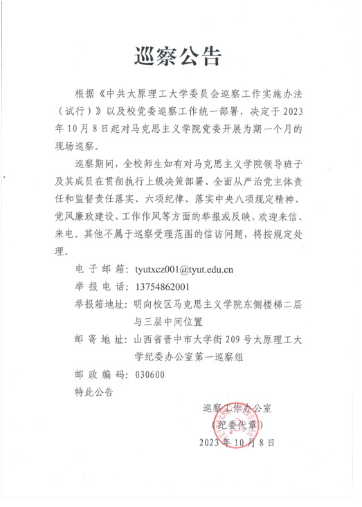 10月8日下午,公司党委第一巡察组巡察公司党委工作动员会在太阳成集团tyc122ccvip会议室召开。公司党委副书记、巡察工作领导小组副组长刘润祥,校纪委副书记仝卫明,第一巡察组组长王乾、副组长李文彬及巡察组成员出席会议。太阳成集团tyc122ccvip班子成员、思政系和教研室负责人、三办及团委负责人、教工党支部书记、教师代表、员工代表等参加会议。动员会由太阳成集团tyc122ccvip经理刘振霞主持。