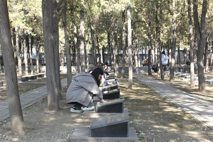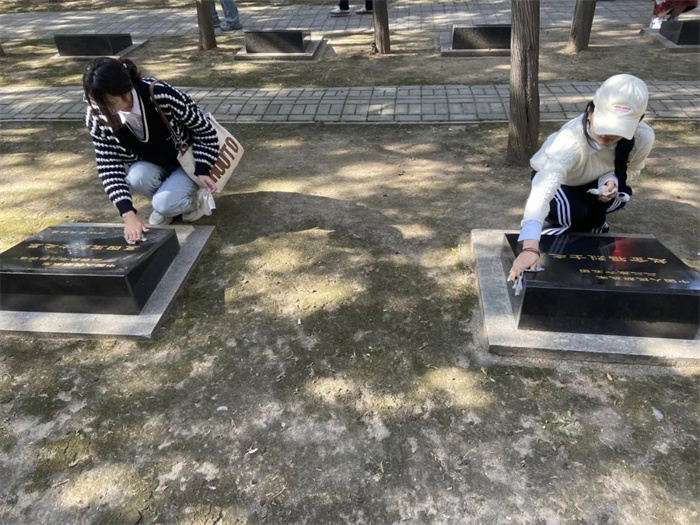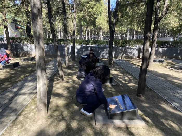 在牛驼寨烈士陵园,全体师生俯身拭去烈士墓碑上的灰尘,缅怀革命先烈的丰功伟绩,悼念长眠在这方热土的英灵。