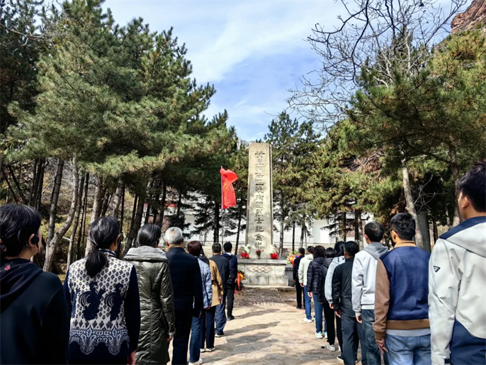 黄崖洞保卫战殉国烈士陵园内,碑亭庄严、苍松挺拔,烈士纪念塔巍峨耸立、直插苍穹。大家进行了庄严的缅怀仪式,向烈士敬献花篮,并三鞠躬,表达对革命烈士最崇高的敬意。
