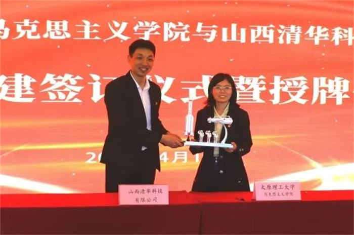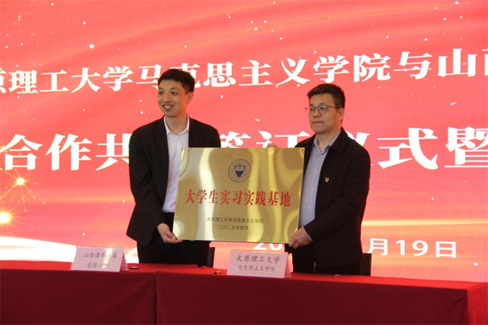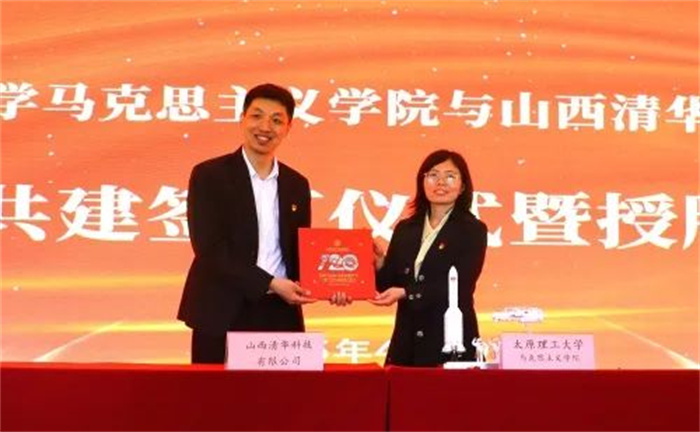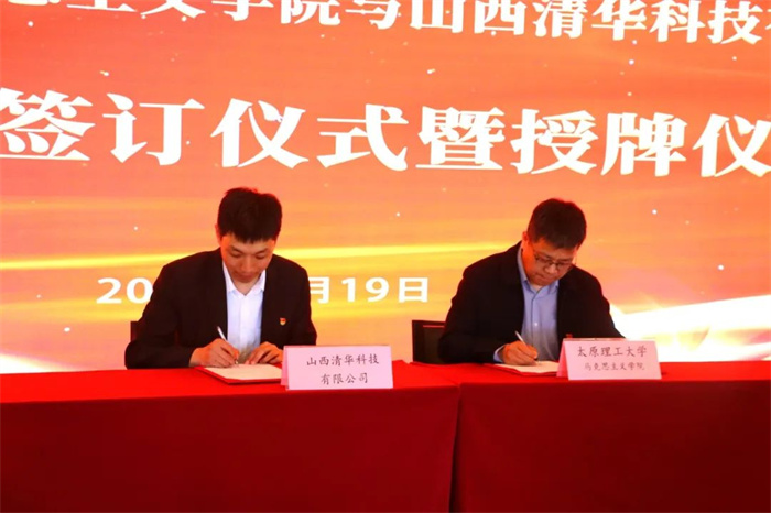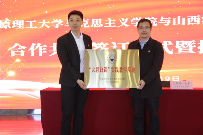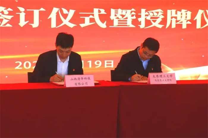 为进一步加强深化院企合作,加快构建“大思政课”育人格局,4月19日,太阳成集团tyc公司党委书记李济民、经理姚建军、副书记安晓艳率公司师生代表一行赴长治,与山西清华科技有限公司举行合作共建签约暨“大思政课实践教学基地”“老员工实习实践基地”授牌仪式。
