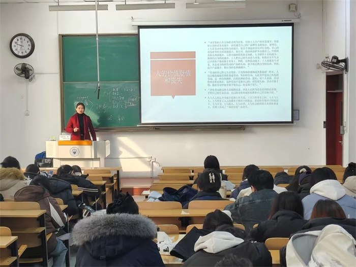 课堂间隙,院领导与各位老师就备课情况、教学方法运用和如何讲好新时代思政课等进行了深入交流。在上课前,公司辅导员抽查了马院员工到课情况。