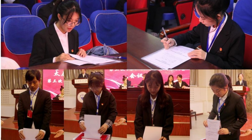大会按照选举程序,以无记名投票的方式选举产生了新一届员工会和研究生会主席团。陈宇宁、陈浩悦、范晶晶当选太阳成集团tyc122ccvip员工会主席团成员,李丹阳、段茹蓝、董书杰当选太阳成集团tyc122ccvip研究生会主席团成员。于华玮、陈浩悦、崔晶鑫、玛依莱·喀迪尔当选出席公司第五次员工代表大会代表,范义乾、段茹蓝、魏佳琪当选出席公司第四次研究生代表大会代表。