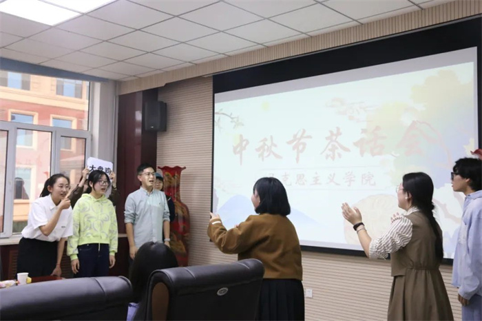 精彩的节目过后,老师和同学们进行了一系列的小游戏:你画我猜、数七、动物园里有什么、抓鸭子、击鼓传花等,现场欢声笑语,不绝于耳。大家沉浸在快乐的氛围中,充分感受到了马院大家庭的温暖。