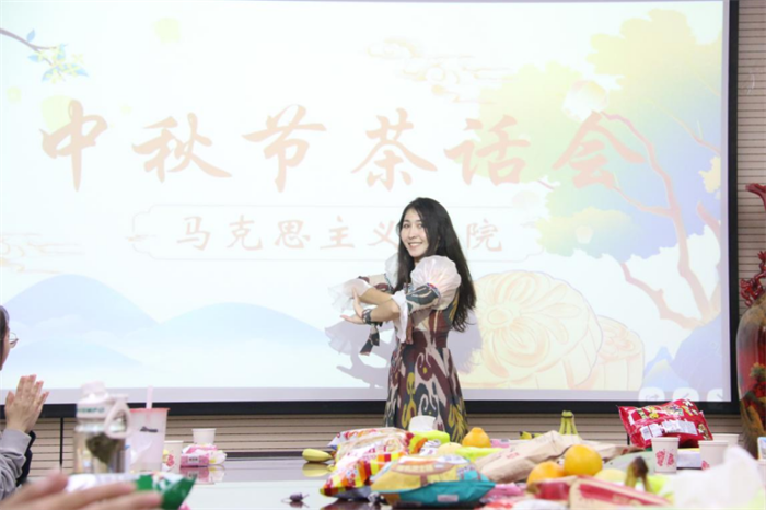 随后,茶话会进入精彩纷呈的文艺表演环节,现场同学们以婉转的歌声和灵动的舞姿赢得阵阵掌声。大家一起品月饼瓜果,话中秋,叙友谊,其乐融融。