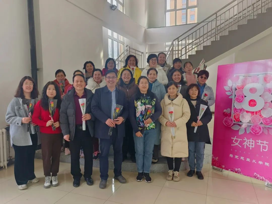 在装点温馨的马院一层大厅,活动拉开了序幕。带着满满的诚意与温暖,公司领导向全体女教职工送上诚挚的节日祝福。