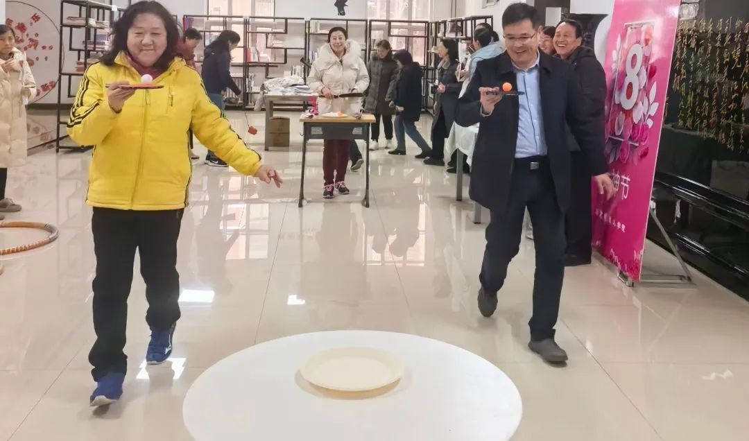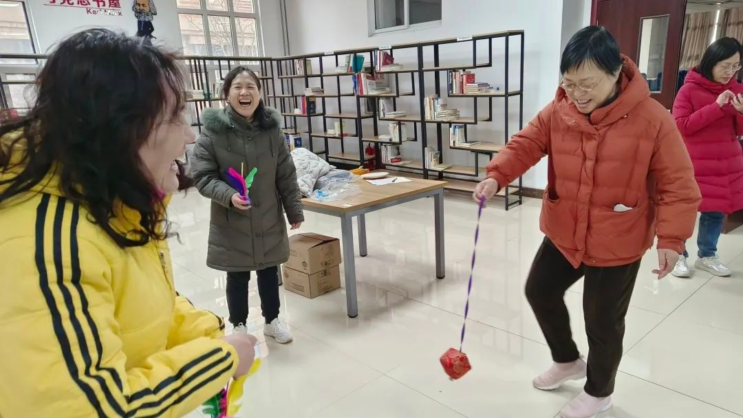 老师们全身心投入各种趣味游戏中,现场气氛热烈。