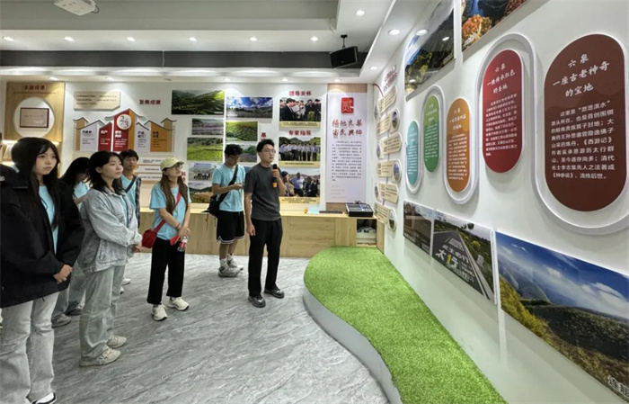 实践队员到六泉本草印象馆实地学习,近距离观看中药材标本,了解六泉乡历史文化。