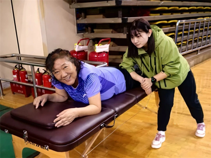 比赛期间,公司员工李瑞军为此次比赛热情赞助,不仅为老师们提供了参赛服,还安排专业的康复师为参赛队员提供赛前热身和赛后拉伸等专业的康复服务,为比赛保驾护航。