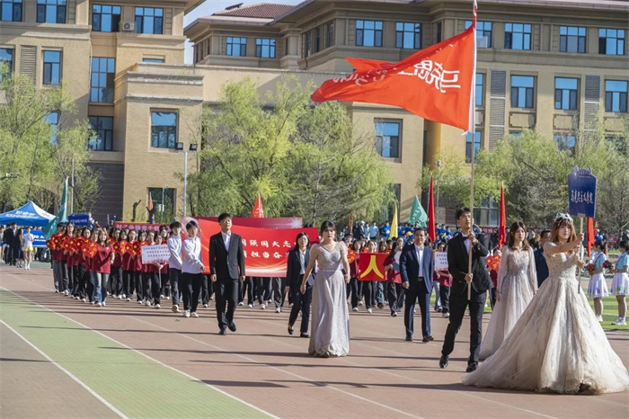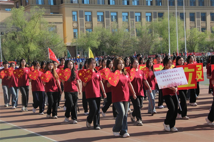 开幕式上,马院代表团昂首阔步,意气风发。迎风飘扬的红旗,铿锵有力的口号,坚定从容的步伐,处处洋溢着青春的气息。