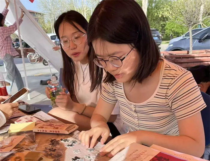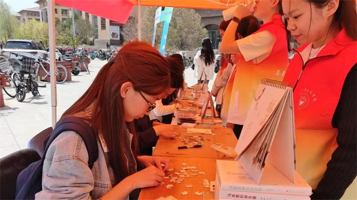 23日至24日,在明向西区广场,公司青年老员工们或沉思撰写读书感悟,或放声朗诵经典片段,或沉浸于马克思形象拼图,丰富多彩的活动形式吸引了众多师生驻足观看、积极参与。