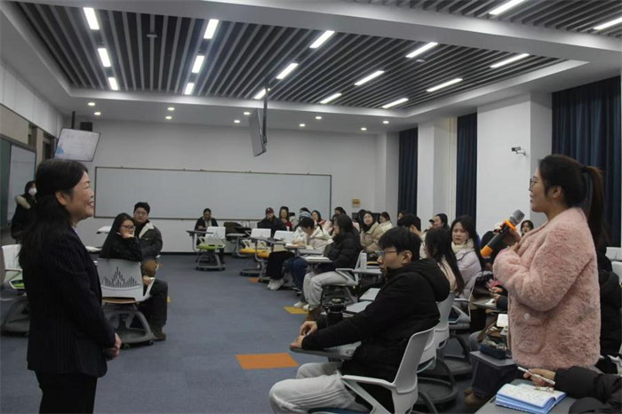 此次沙龙以“访谈+互动”形式展开。朱颖原教授结合自身丰富的学术与人生经历,围绕“如何指导员工确定论文选题”“如何在教学中提高课堂吸引力”等议题,深入浅出地分享了自己的见解。她强调,教师应如一条流动的河不断提升自我,方能给予员工新知并为其解惑。同时她提出“内容为王”的教学理念,认为教学中应关注“亮点、热点、疑点”三大方面。